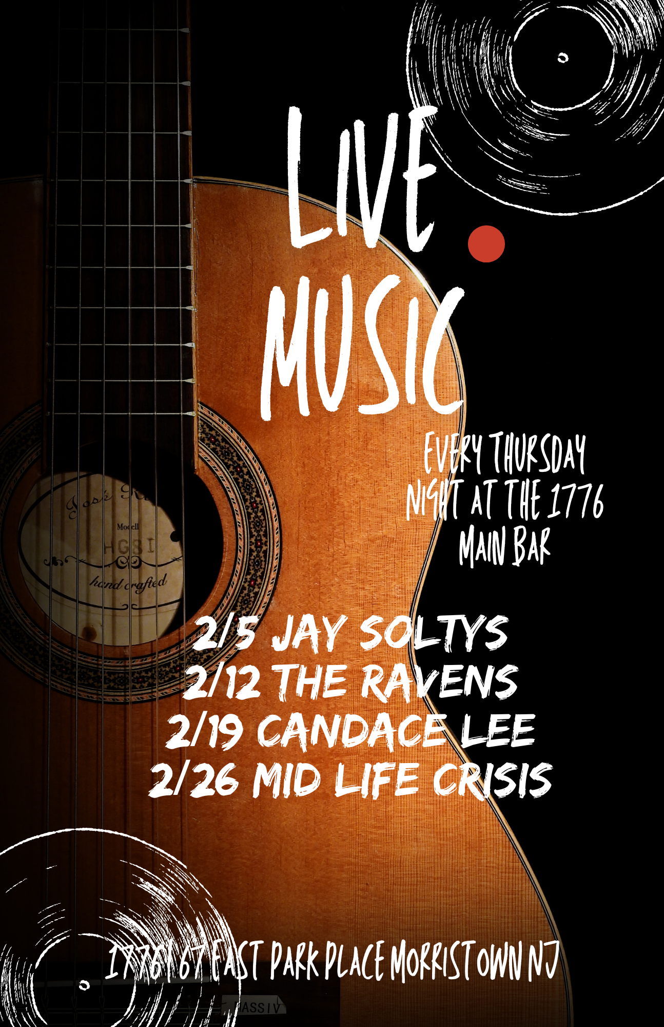 Make sure you choose 1776 for dinner on Thursday nights. Our live music starts at 7pm in the main bar til 10pm. Enjoy a great night out at your favorite spot and listen to great performers. We have created the perfect night out for you and your friends!