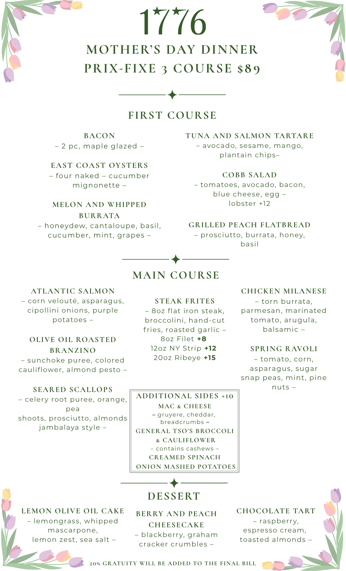 - Mother's Day Prix-Fixe 3 Course Dinner