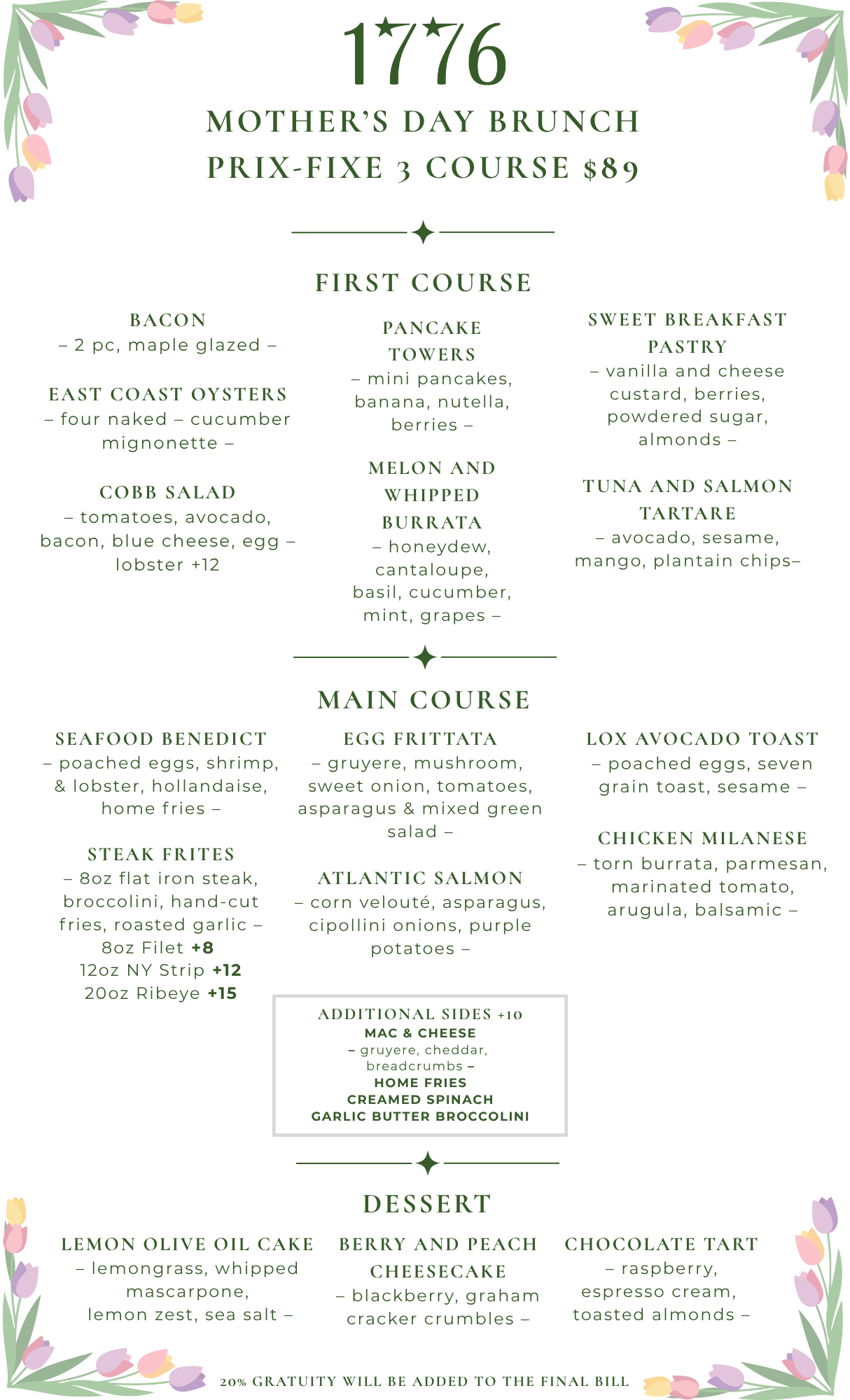- Mother's Day Prix- Fixe 3 Course Brunch Menu